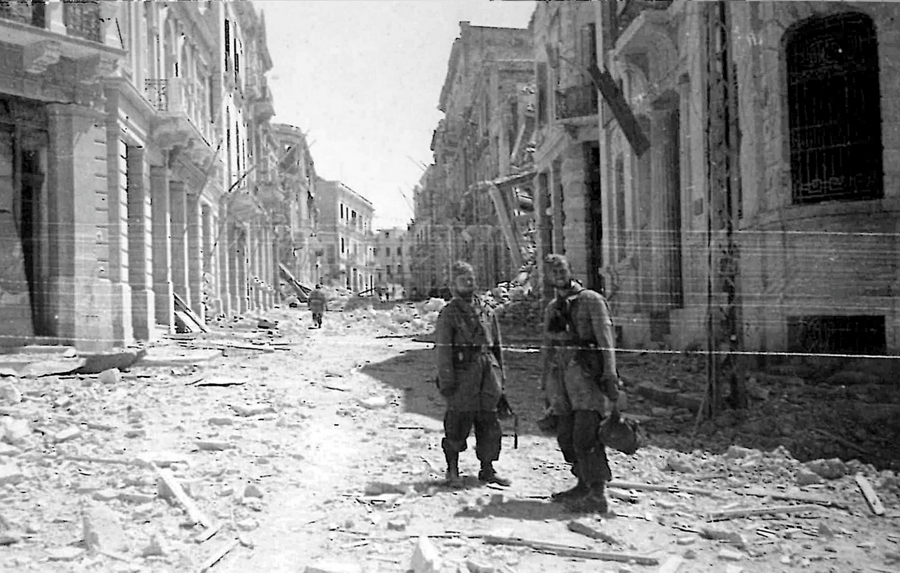 Weary German paratroopers from III. Btn FJR 1. pose on “25th of August” Avenue, probably noon of May 29 1941.