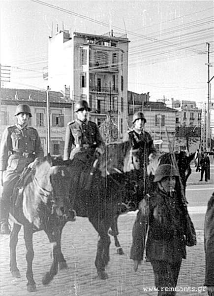 A German mounted detachment on the way to the barracks, after ceremonial duties in the garrison HQ. Thessaloniki, probably Winter 1943.