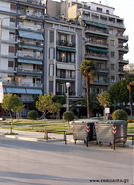 The scene is located just in the heart of the city, in Nikis Anenue, in front of the White tower landmark. The once prominent building in the background still stands, but now between higher constructions.